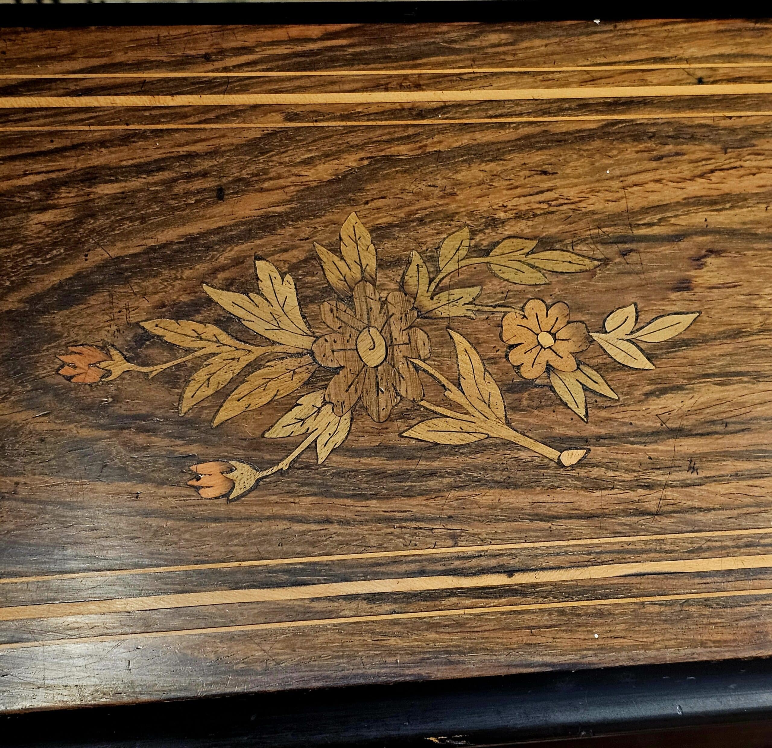 Housed in a rosewood box and featuring marquetry or floral inlay.