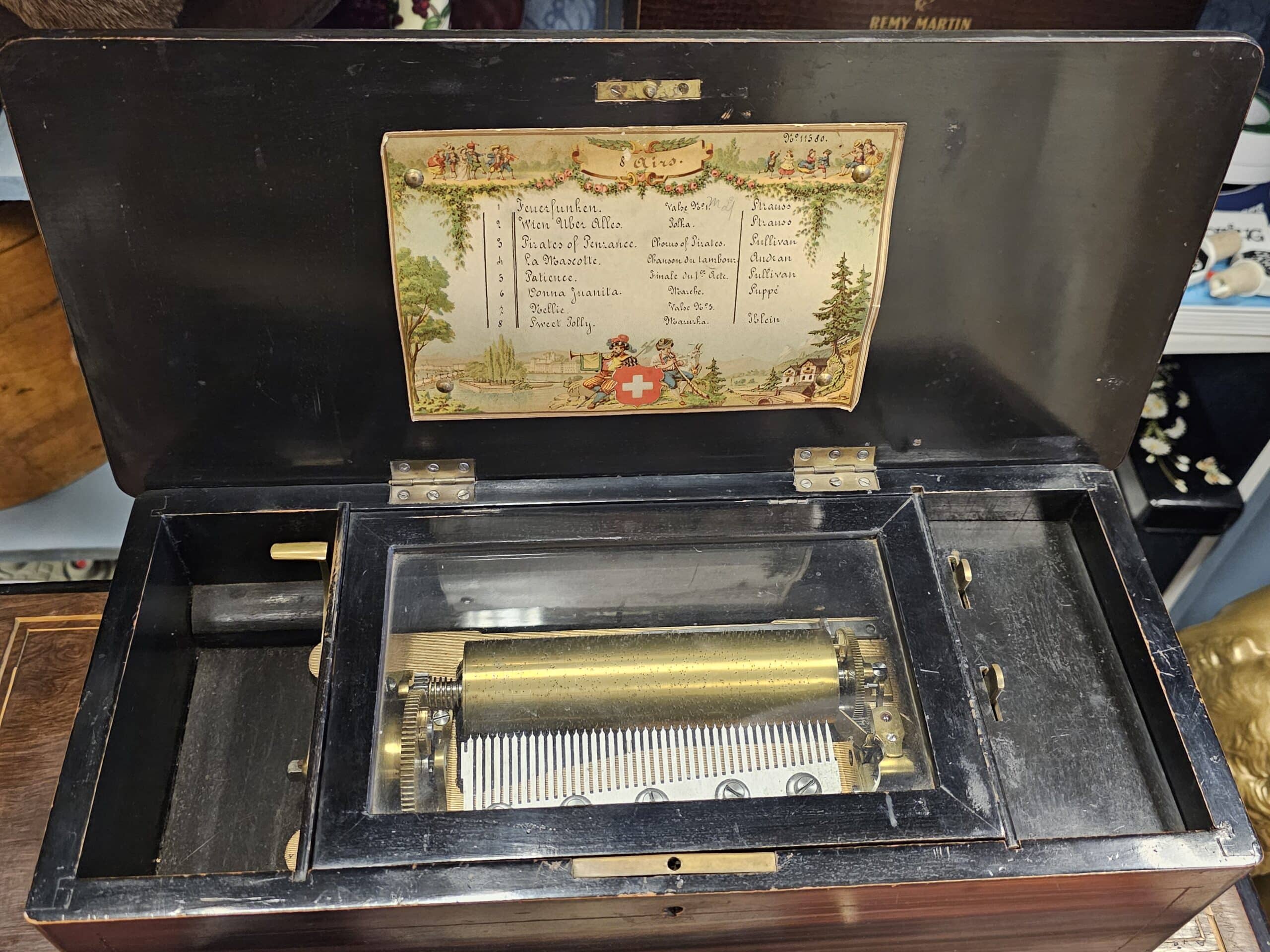 This is an antique Swiss cylinder music box, likely dating from the late 19th century.