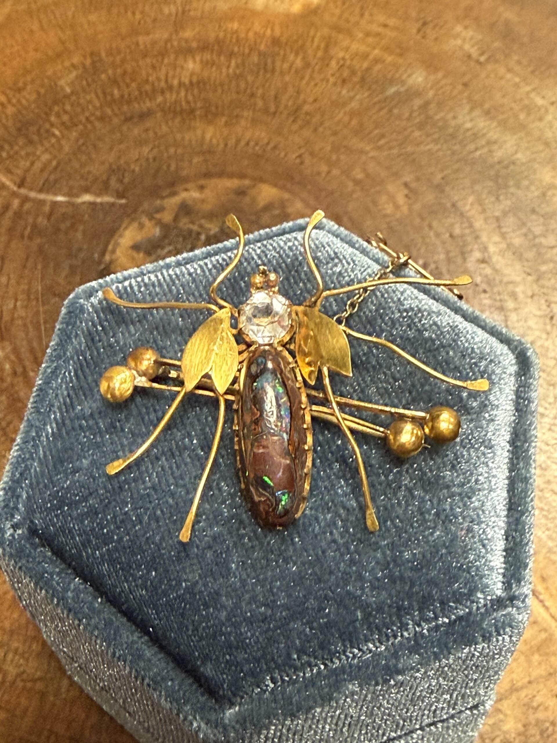 14ct gold boulder opal set bug brooch in great preloved condition