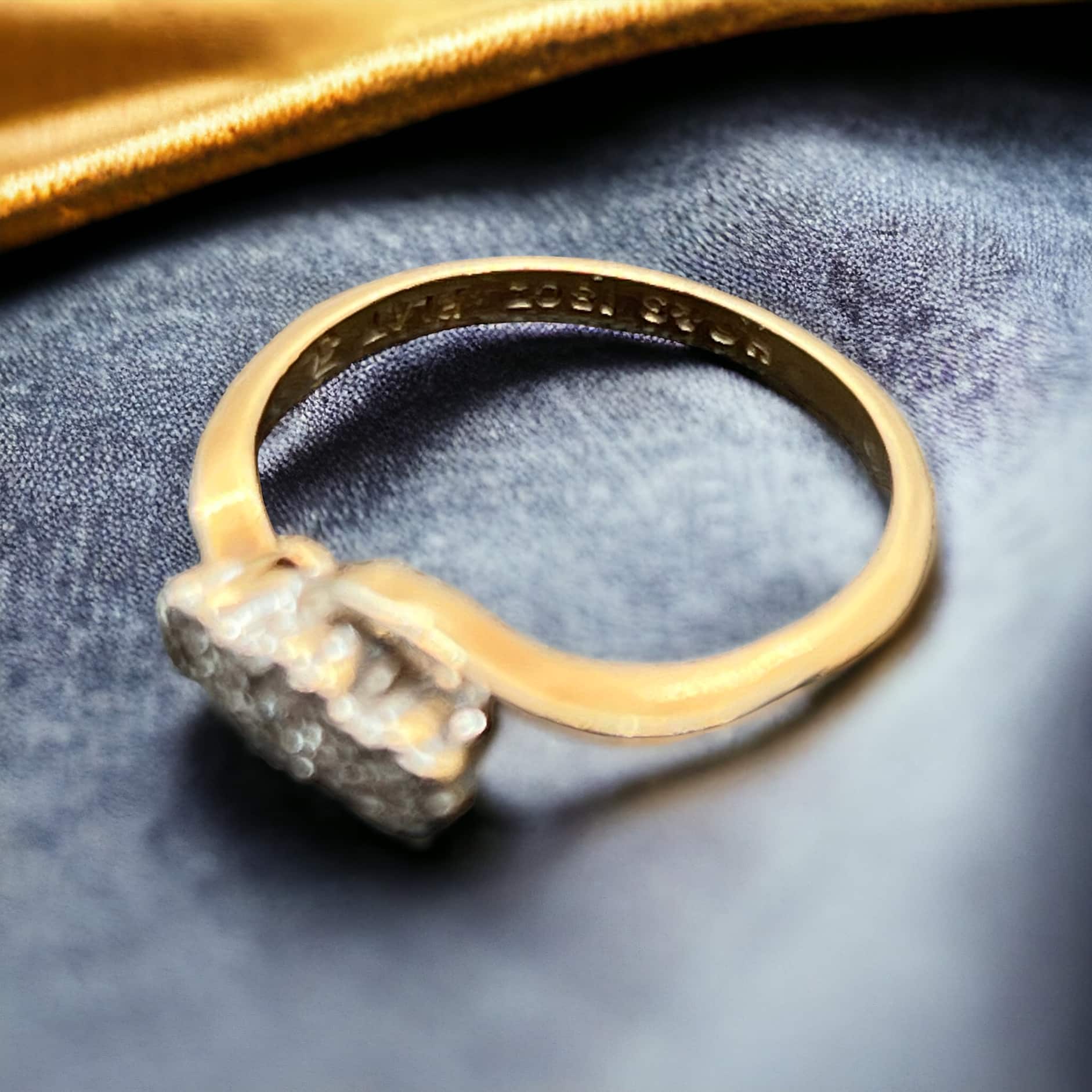 Gorgeous little 18ct gold and platinum ring set with three little diamonds in a slight twist