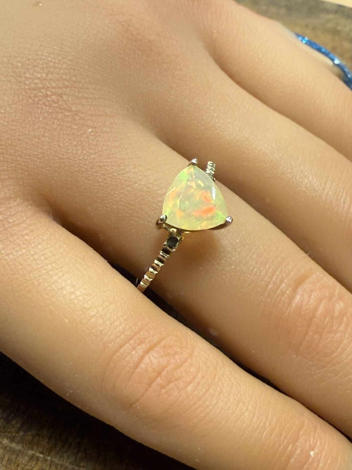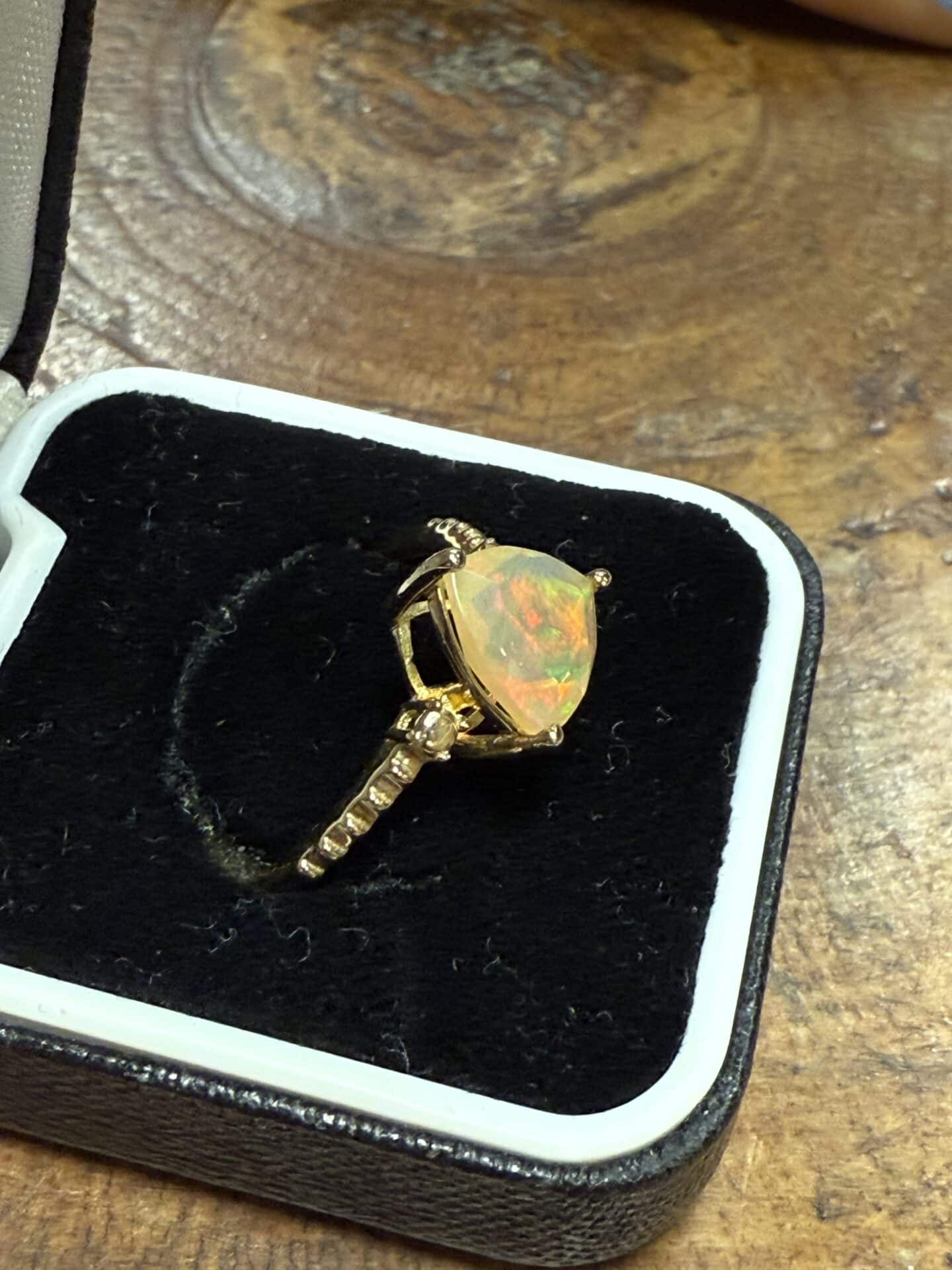 Absolutely gorgeous 9ct gold Ethiopian opal solitaire