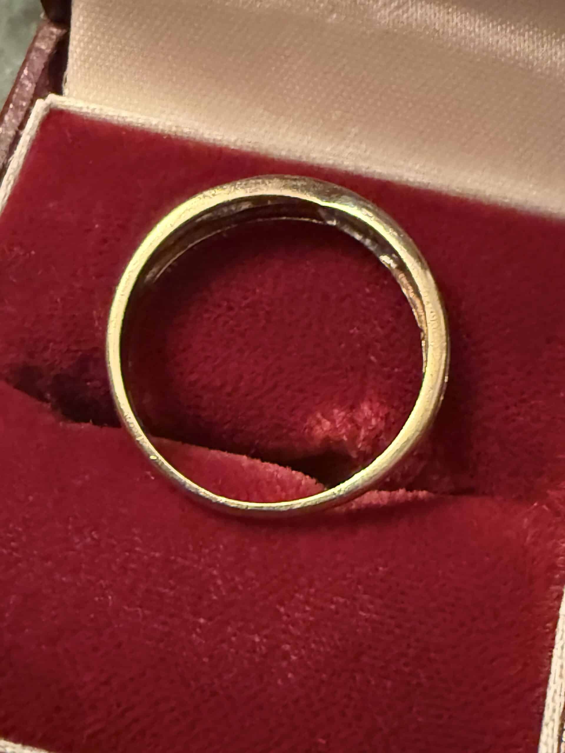 Very nice diamond set crossover 9ct gold band in very good preloved condition preloved condition