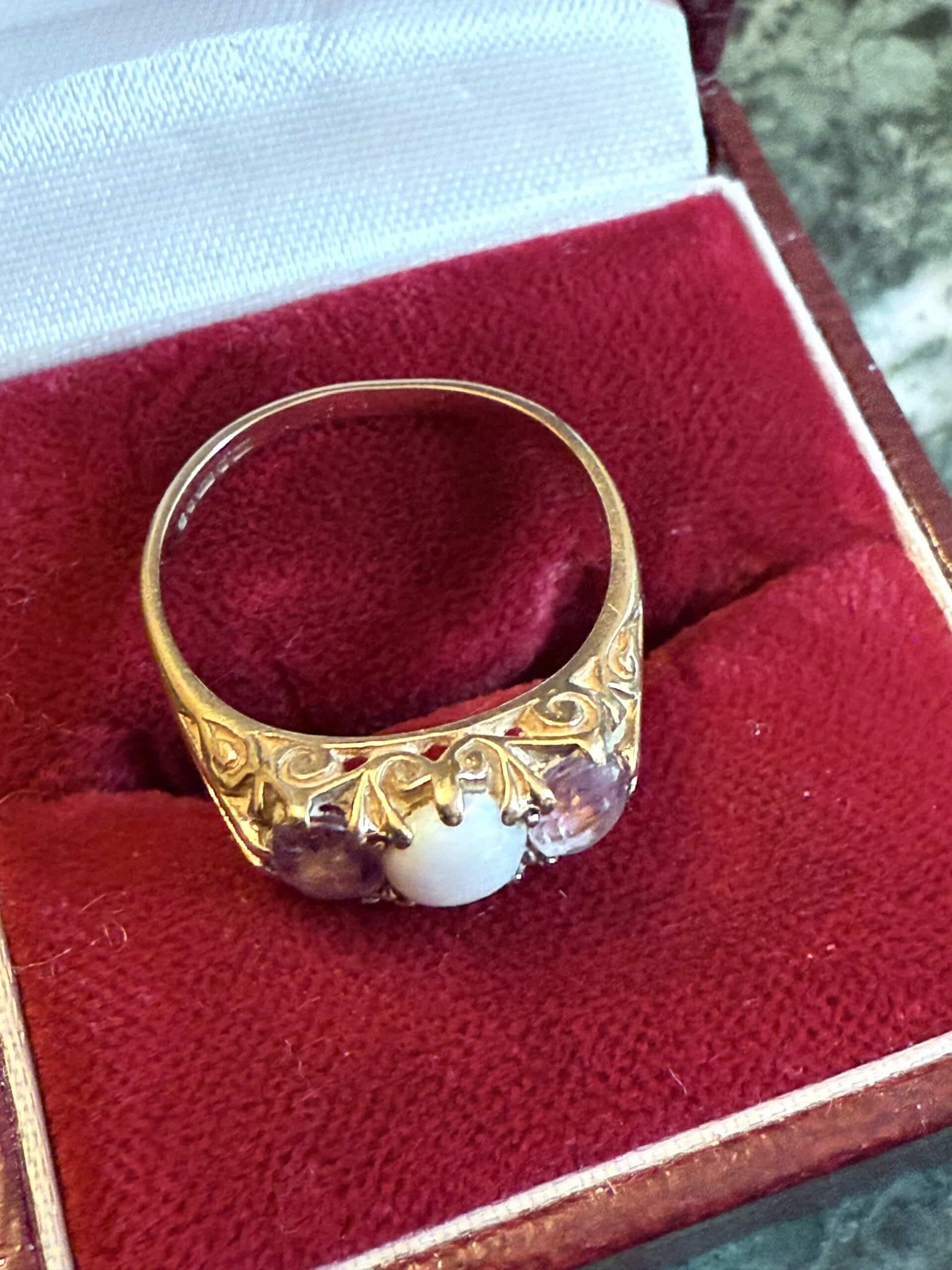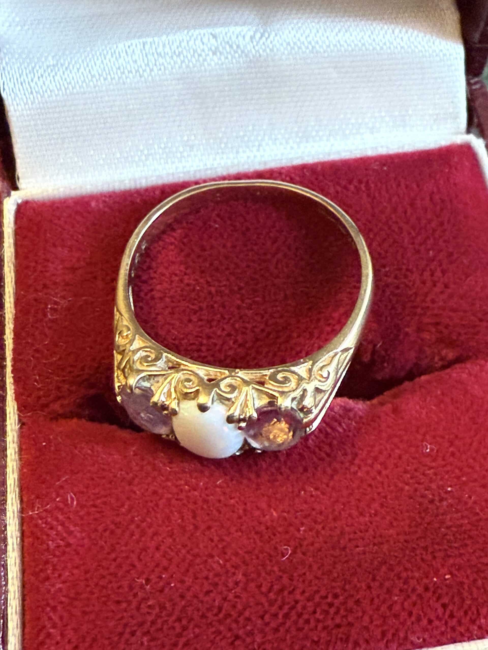 Antique opal and amethyst ladies ring in excellent preloved condition