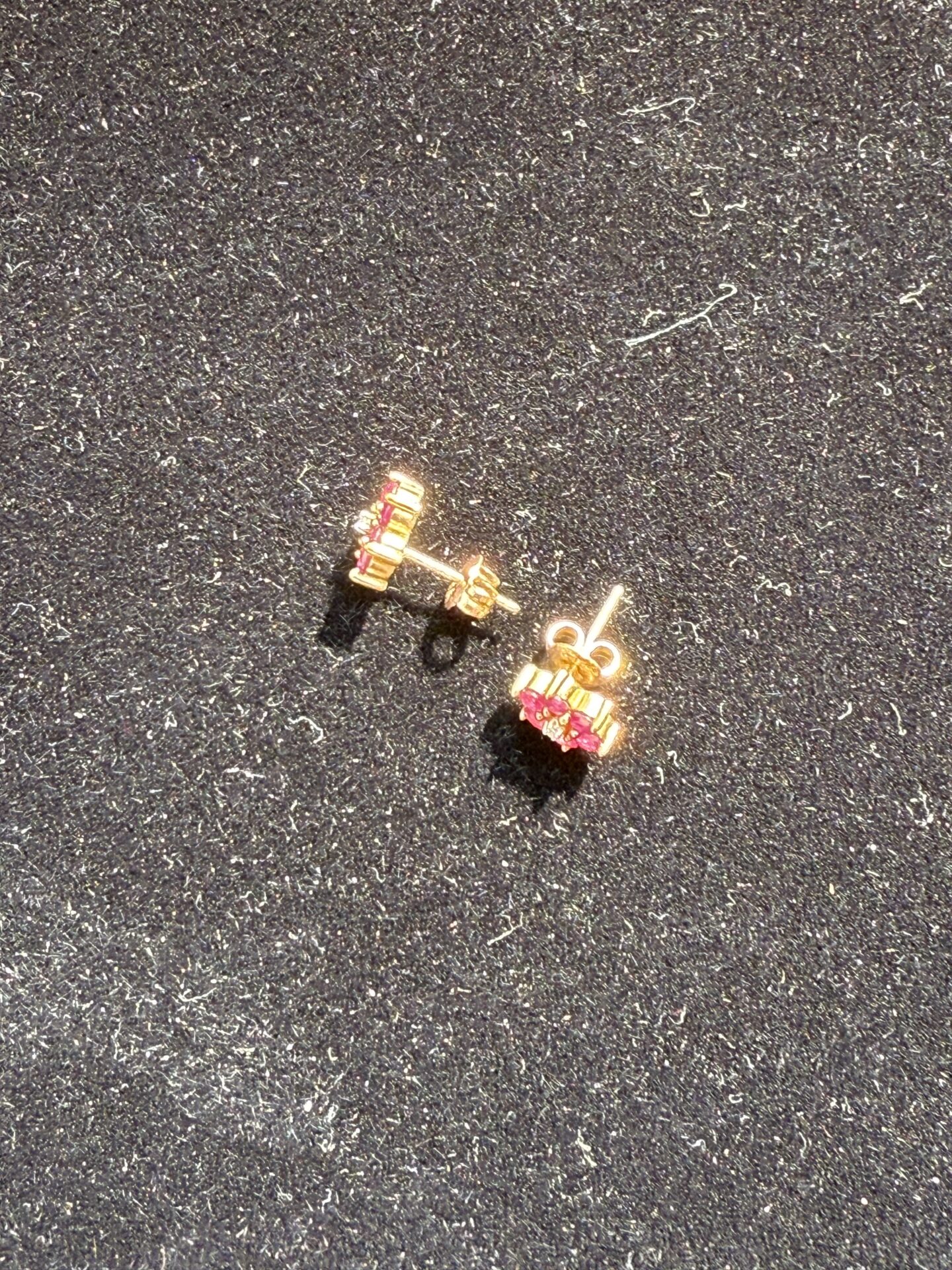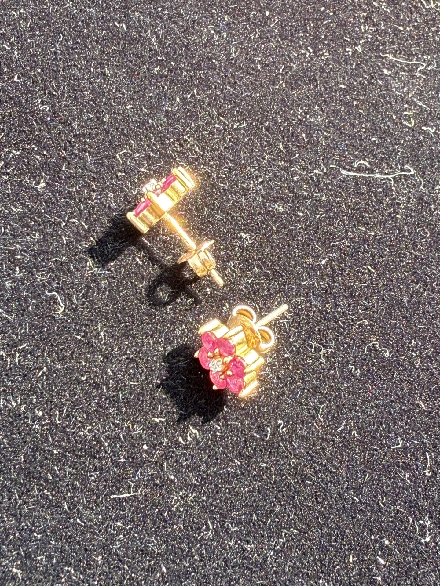 Beautiful pair of ruby clusters earring with a central diamond the rubies are colourful and bright