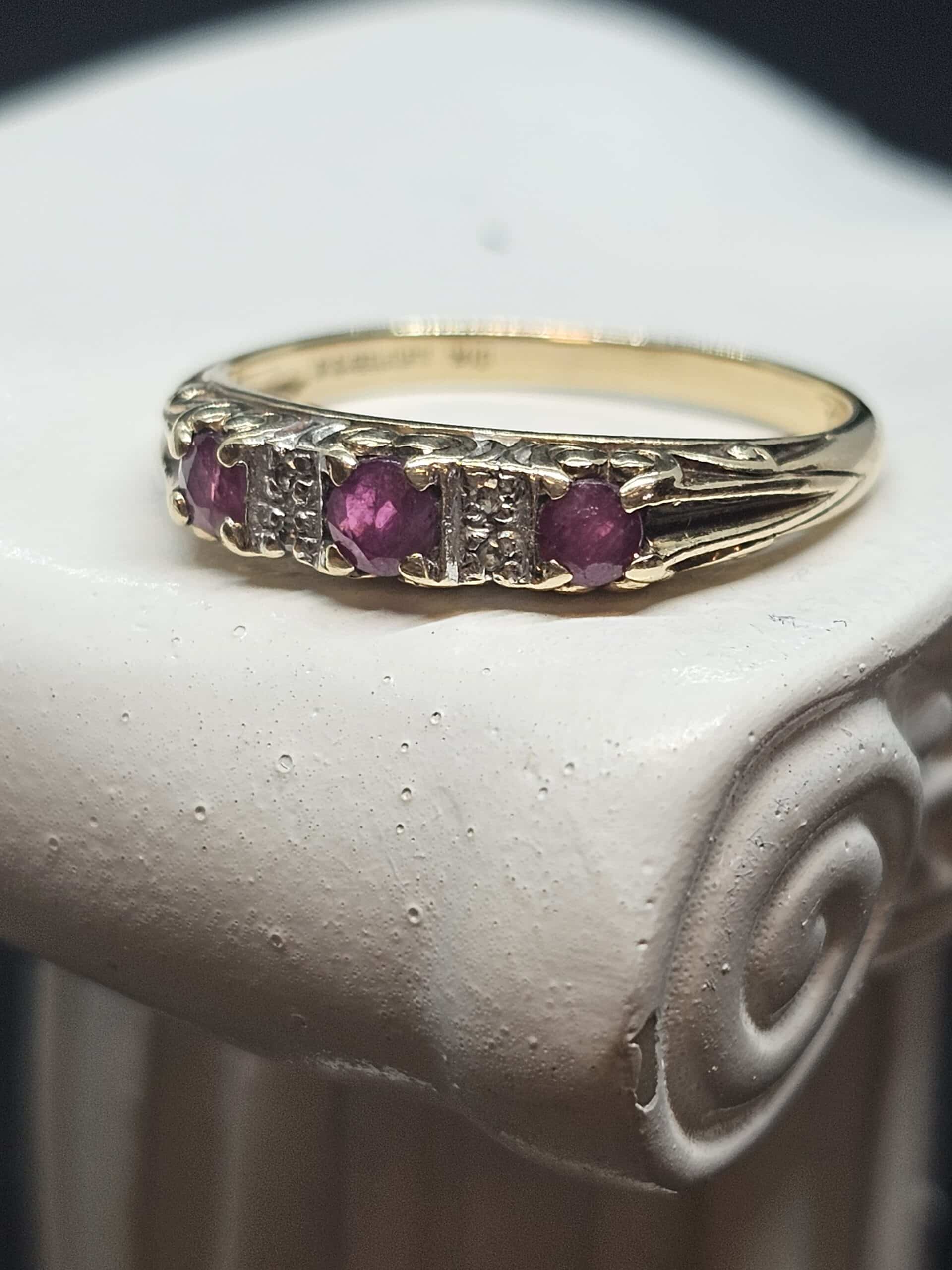 9ct yellow gold ruby and diamond ring
