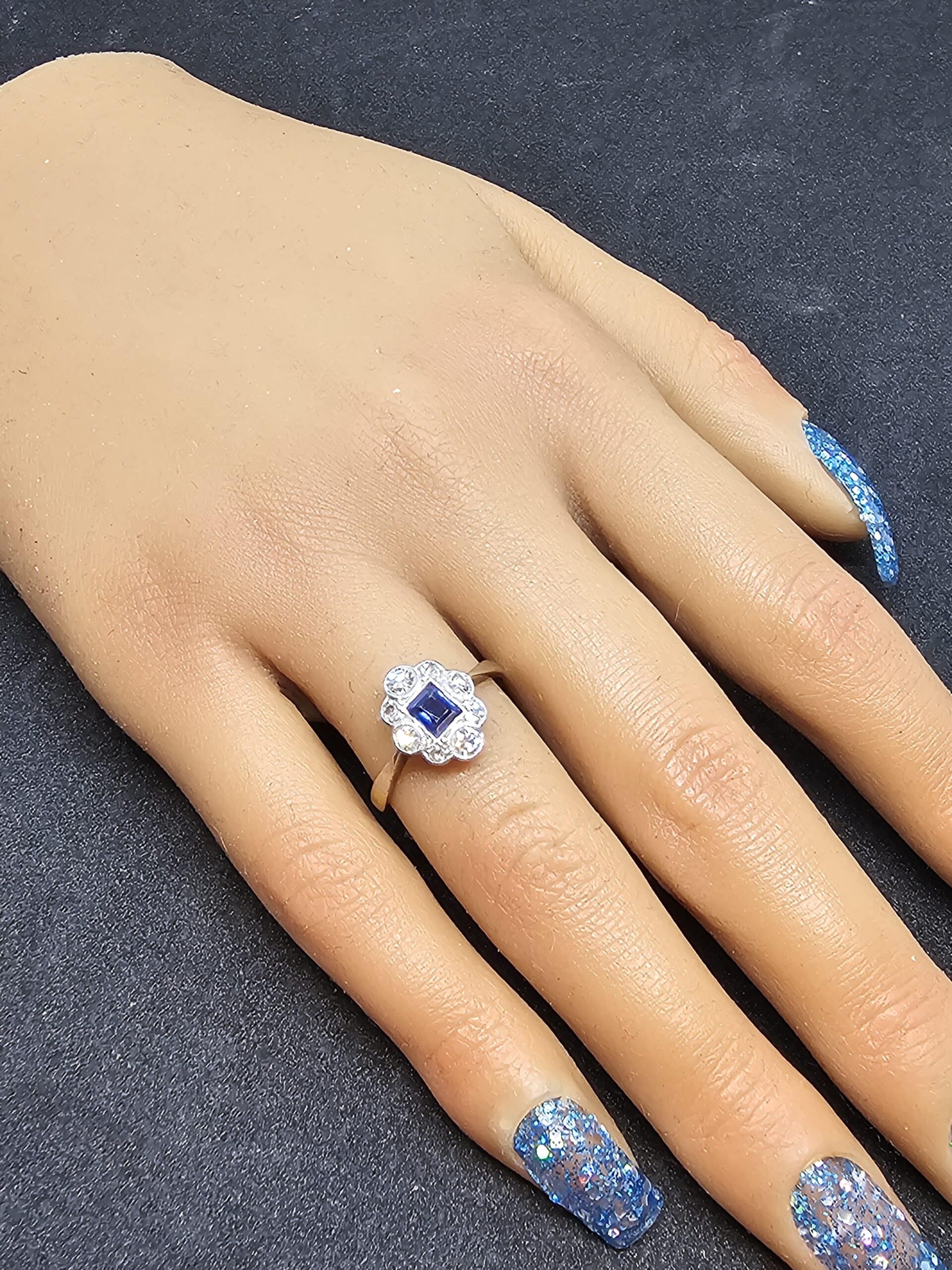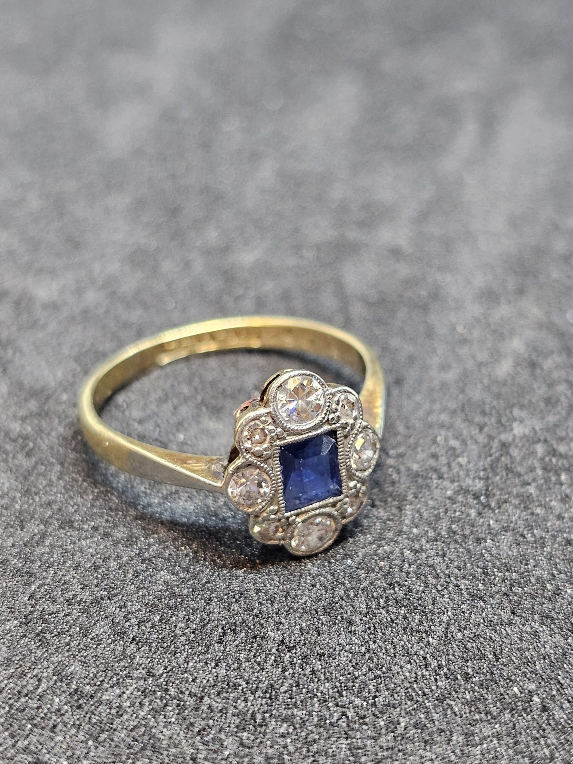 Art Deco 18ct Gold and Platinum Sapphire and Diamond Ring