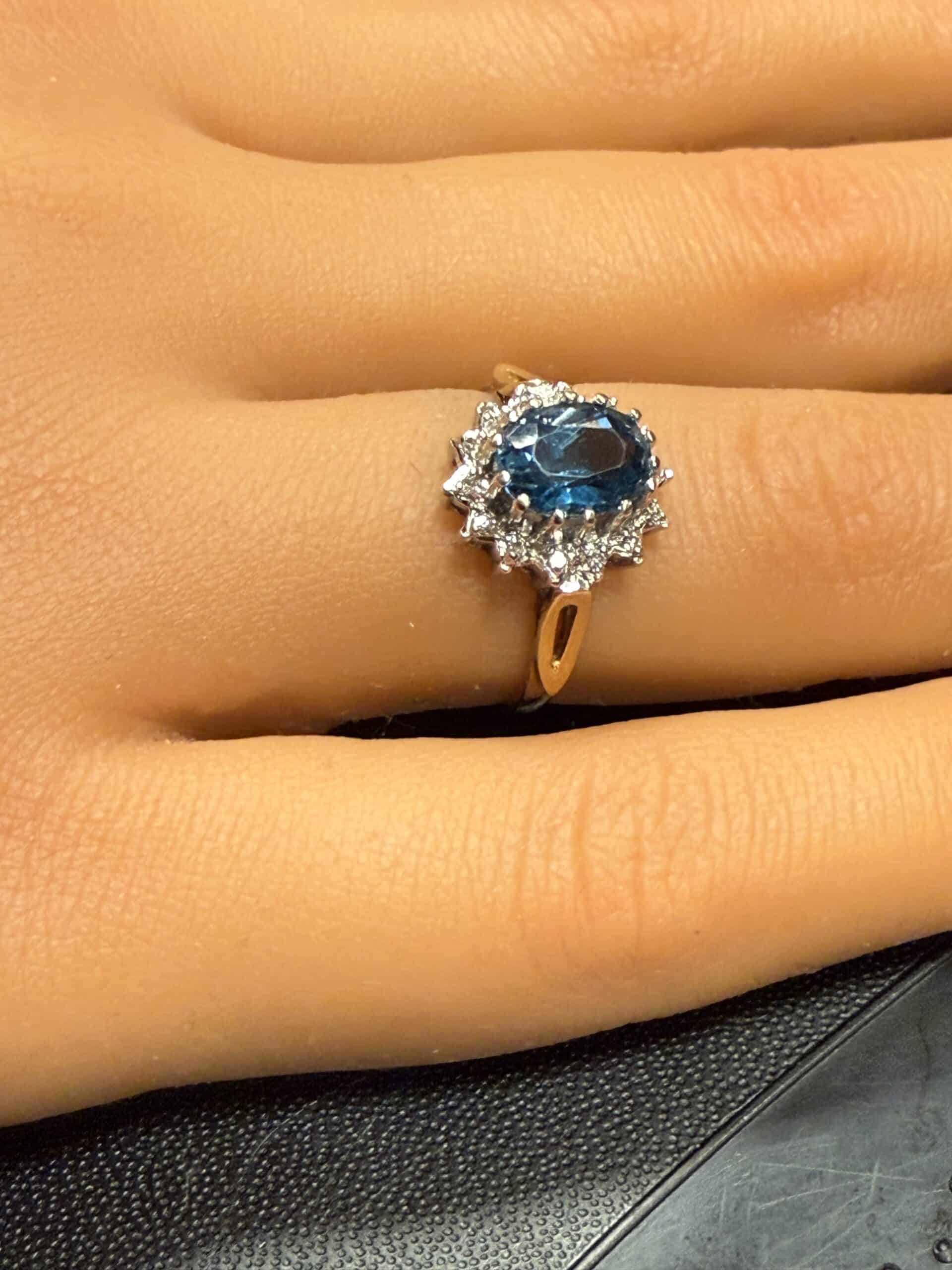 Blue topaz and diamond ladies ring 9ct gold