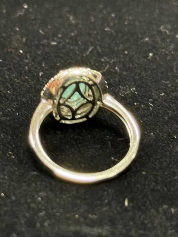 Diamond and emerald ladies 9ct white gold ring