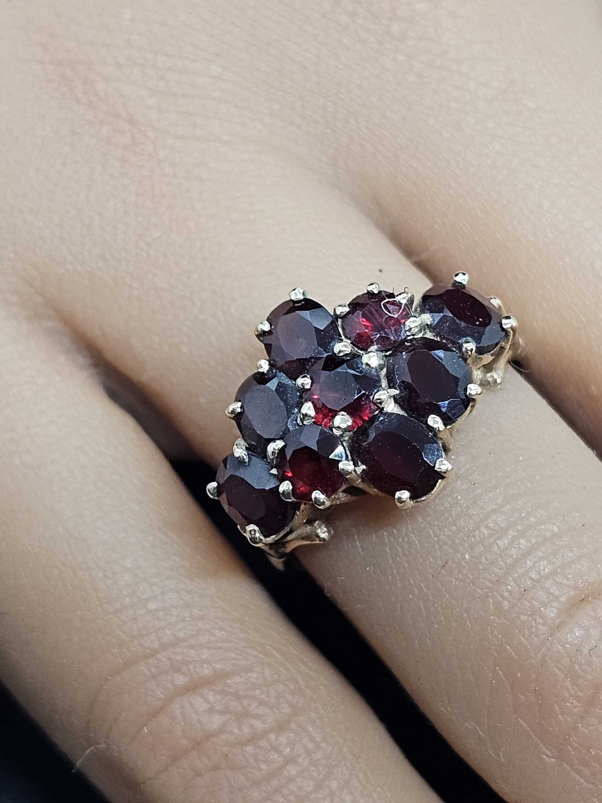 Very nice 9ct gold ladies vintage Garnet Cluster Gold Ring in excellent condition preloved condition