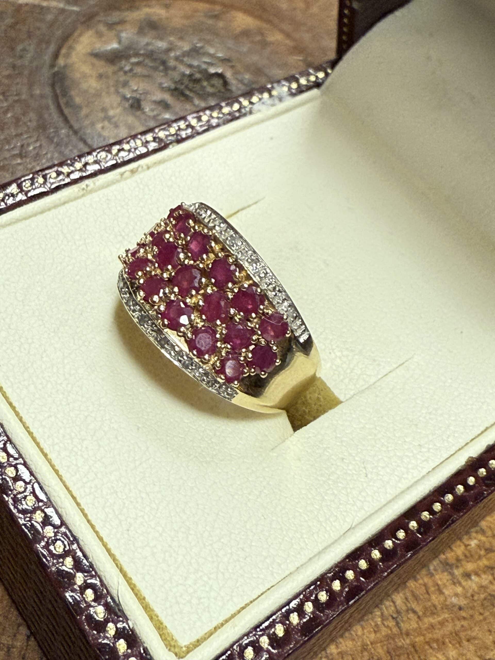 Stunning 9ct gold diamond and ruby set ladies ring in excellent preloved condition