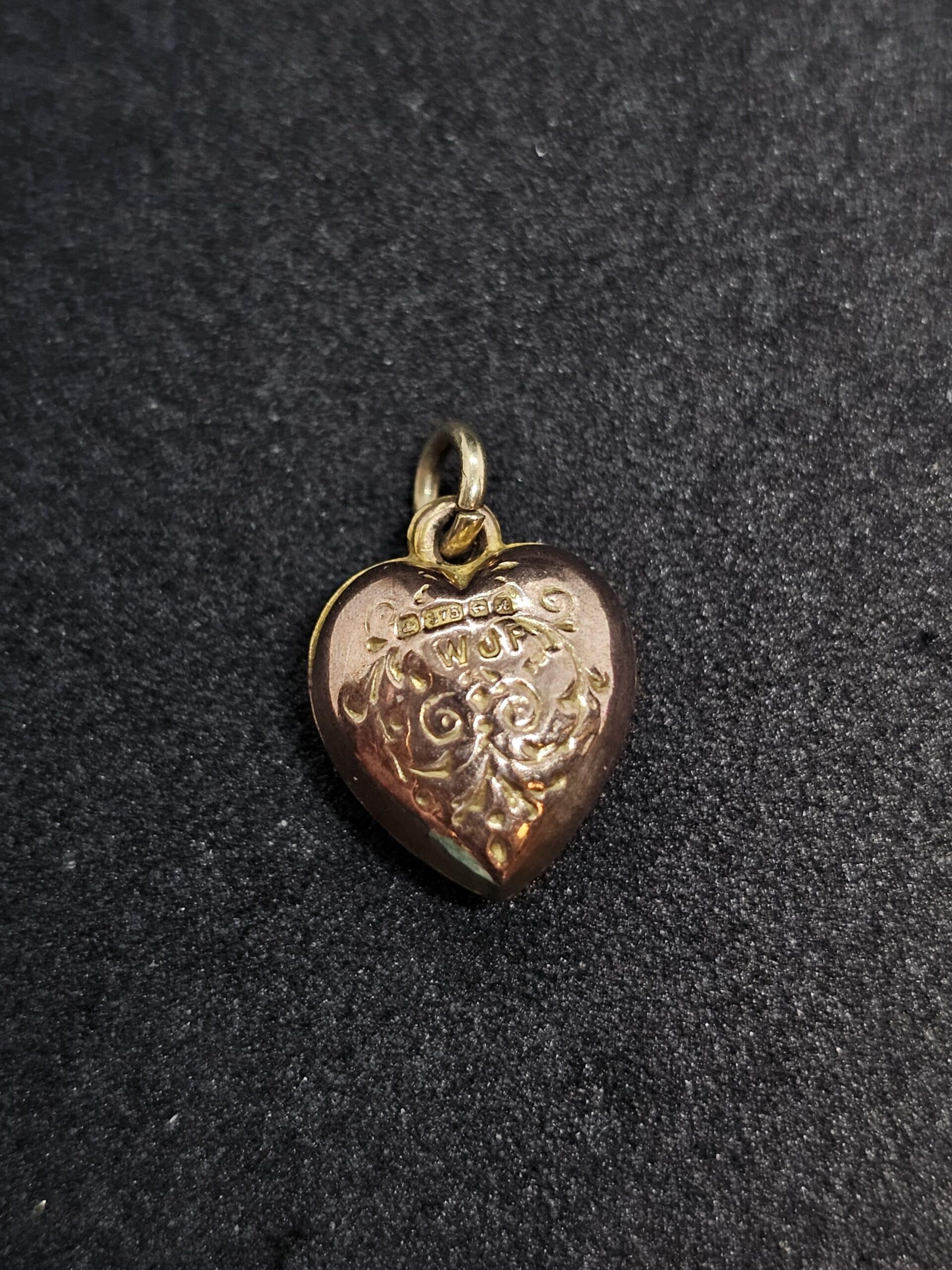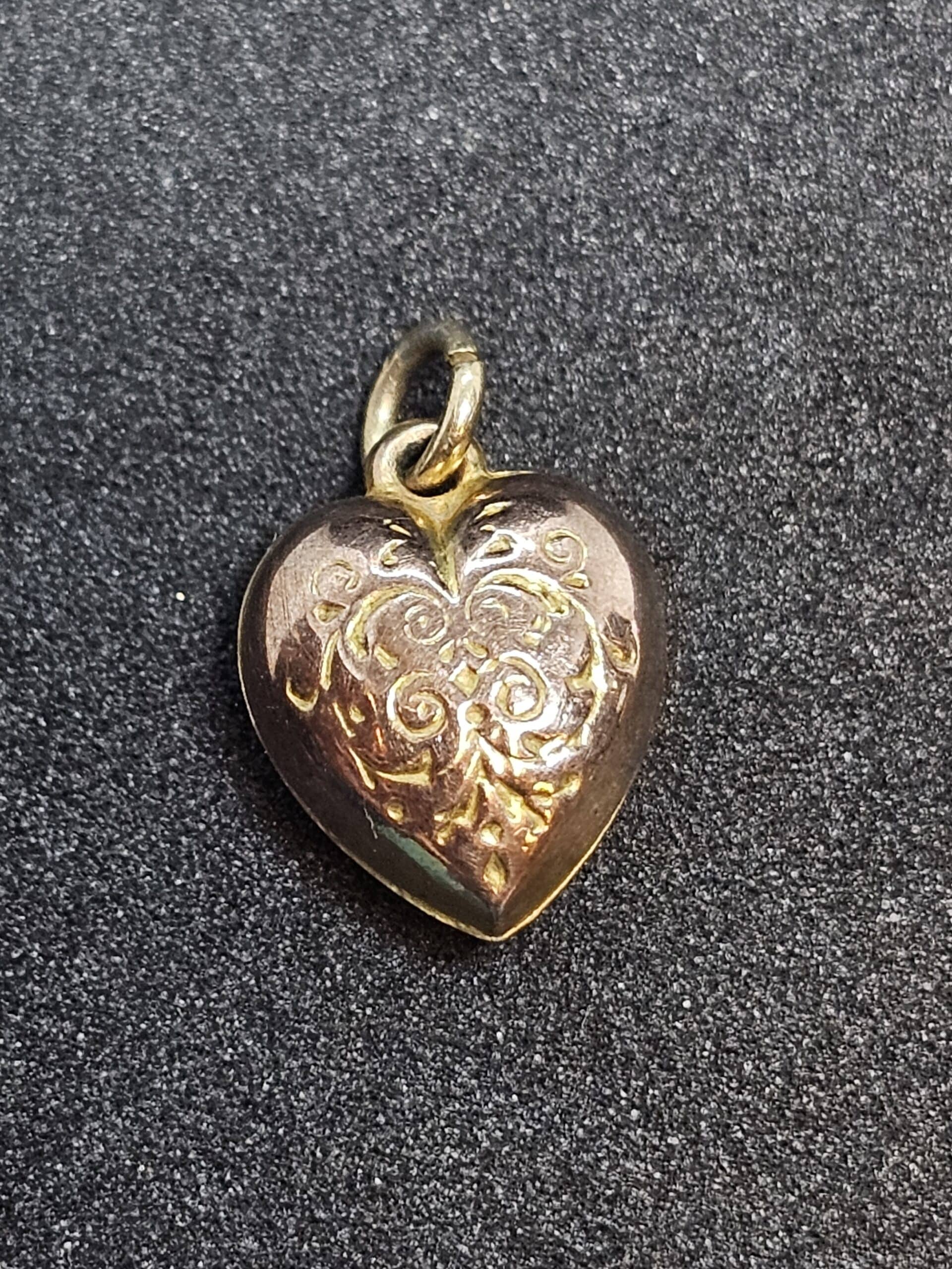 9ct Rose gold  Etched Heart pendant or charm lovely vintage charm or pendant in excellent condition  and fully hallmarked