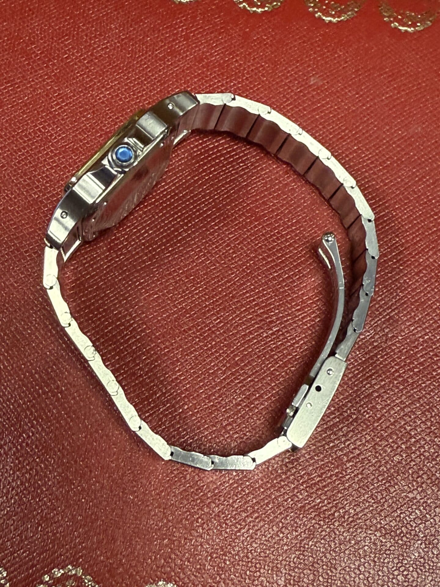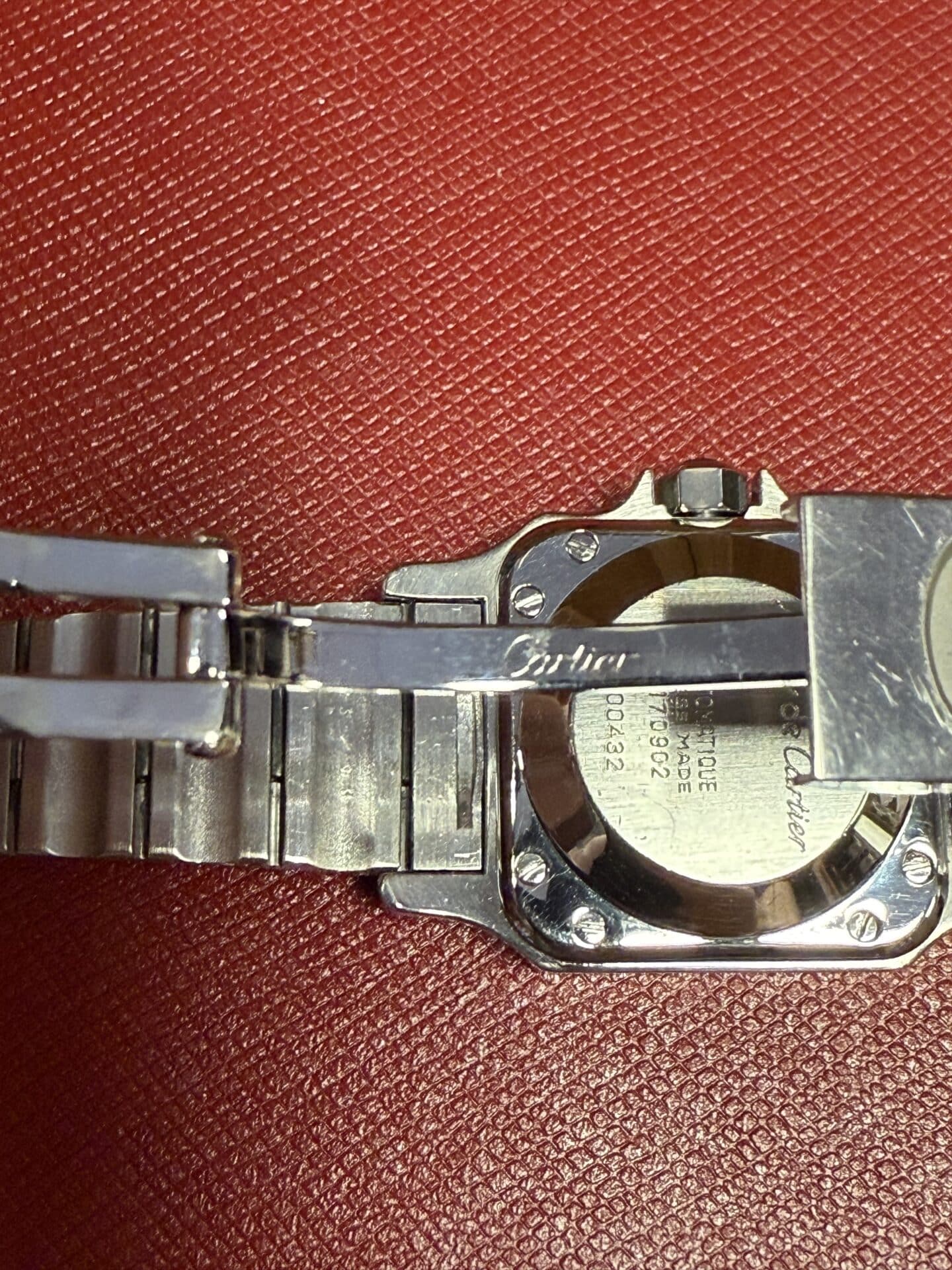 Gorgeous santos de Cartier ladies steel and 18ct gold watch in original box