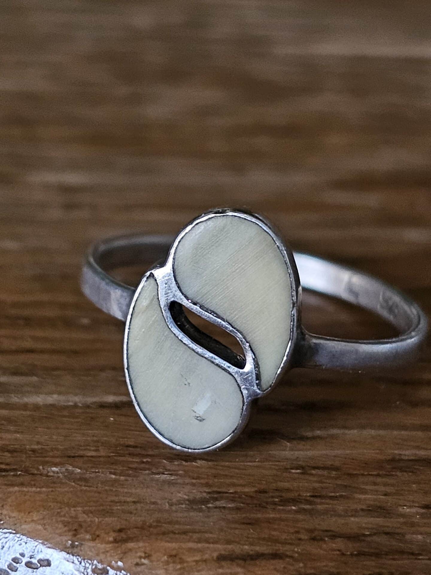 Silver inlay modernist dress ring