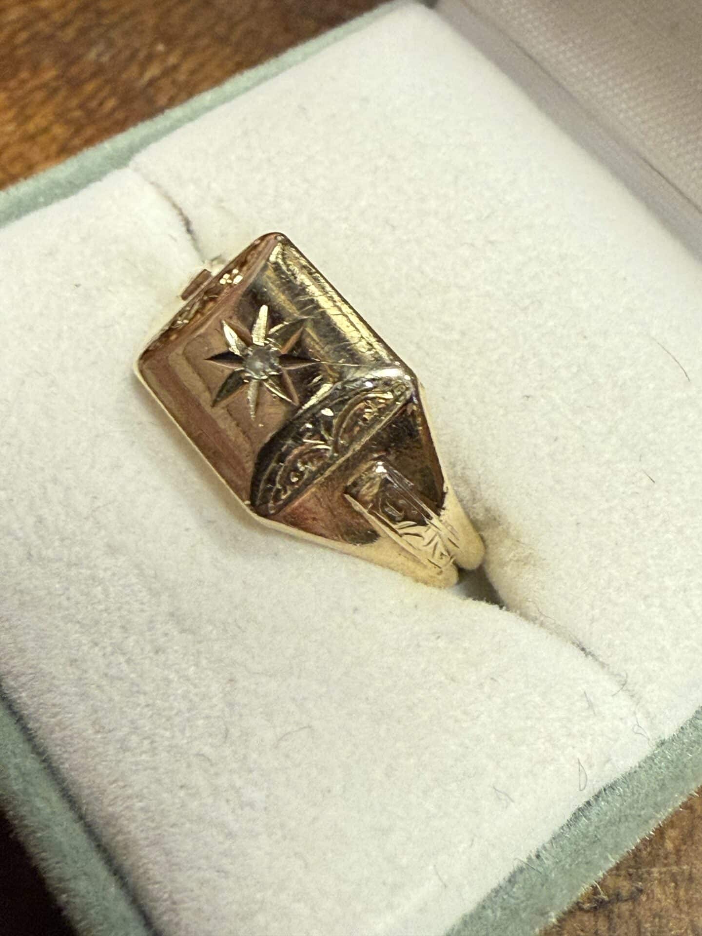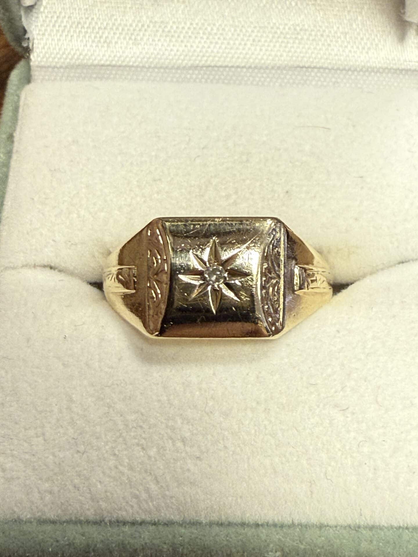 Very nice 9ct gold vintage unisex diamond set signet ring in excellent preloved condition