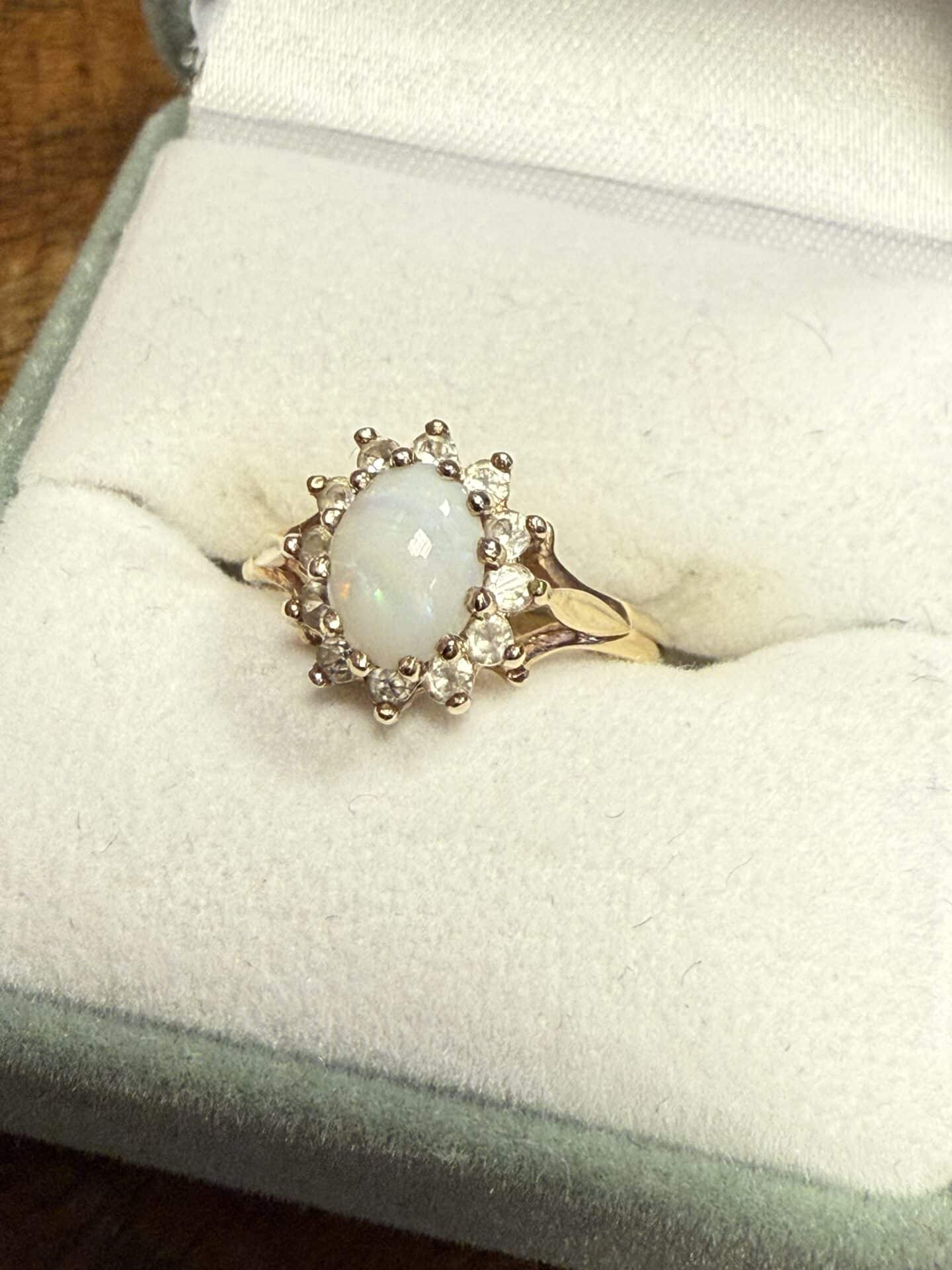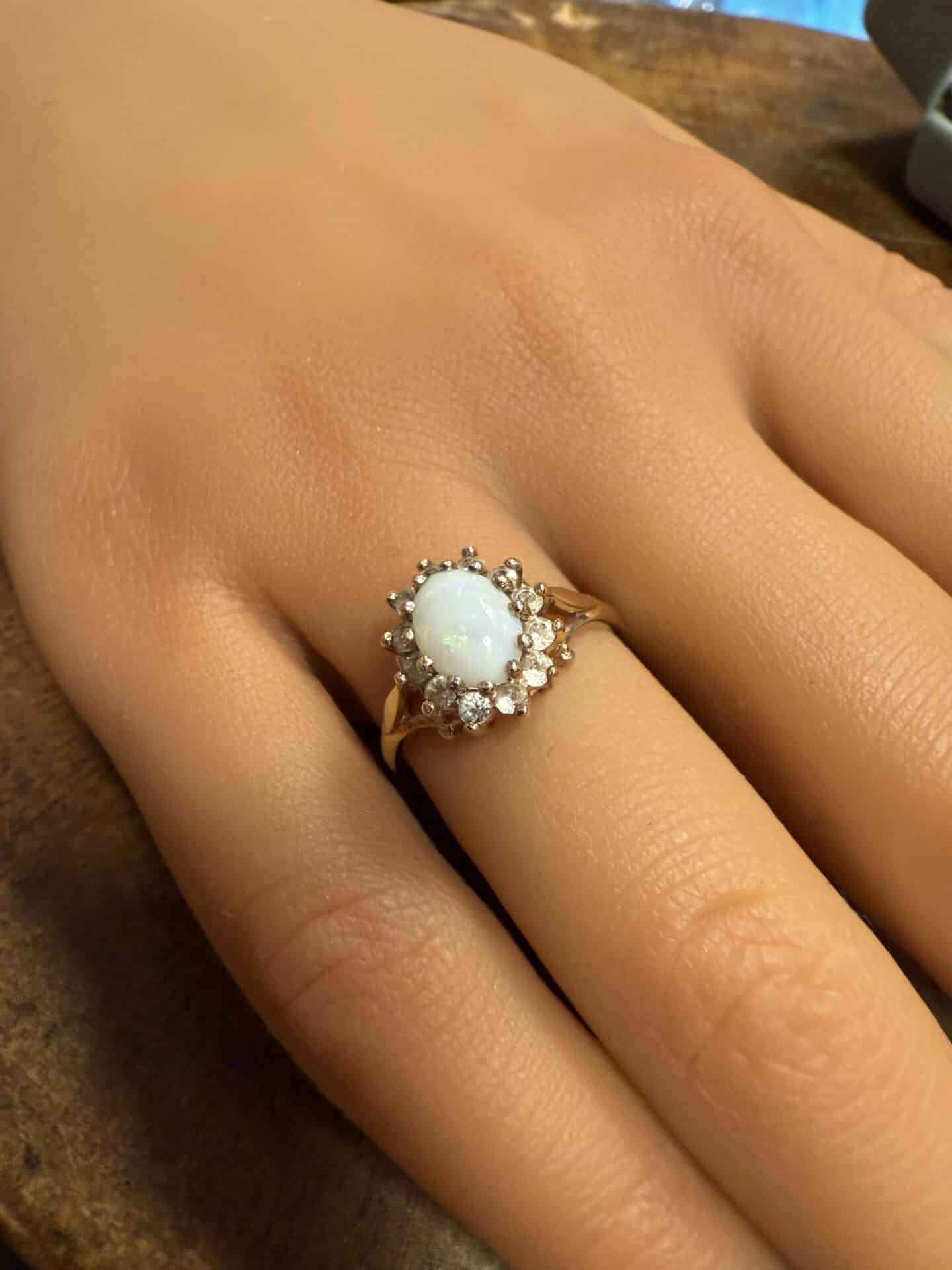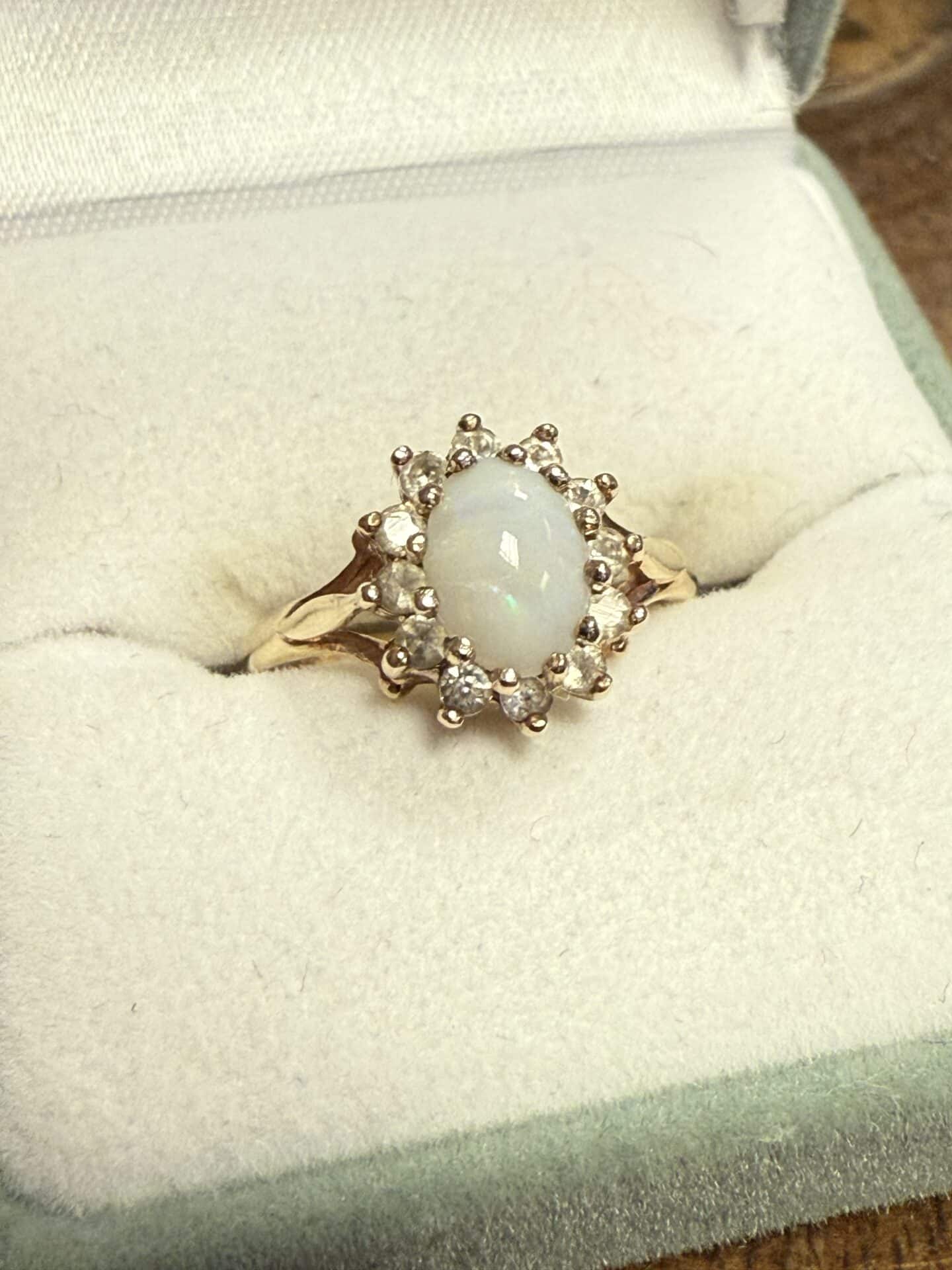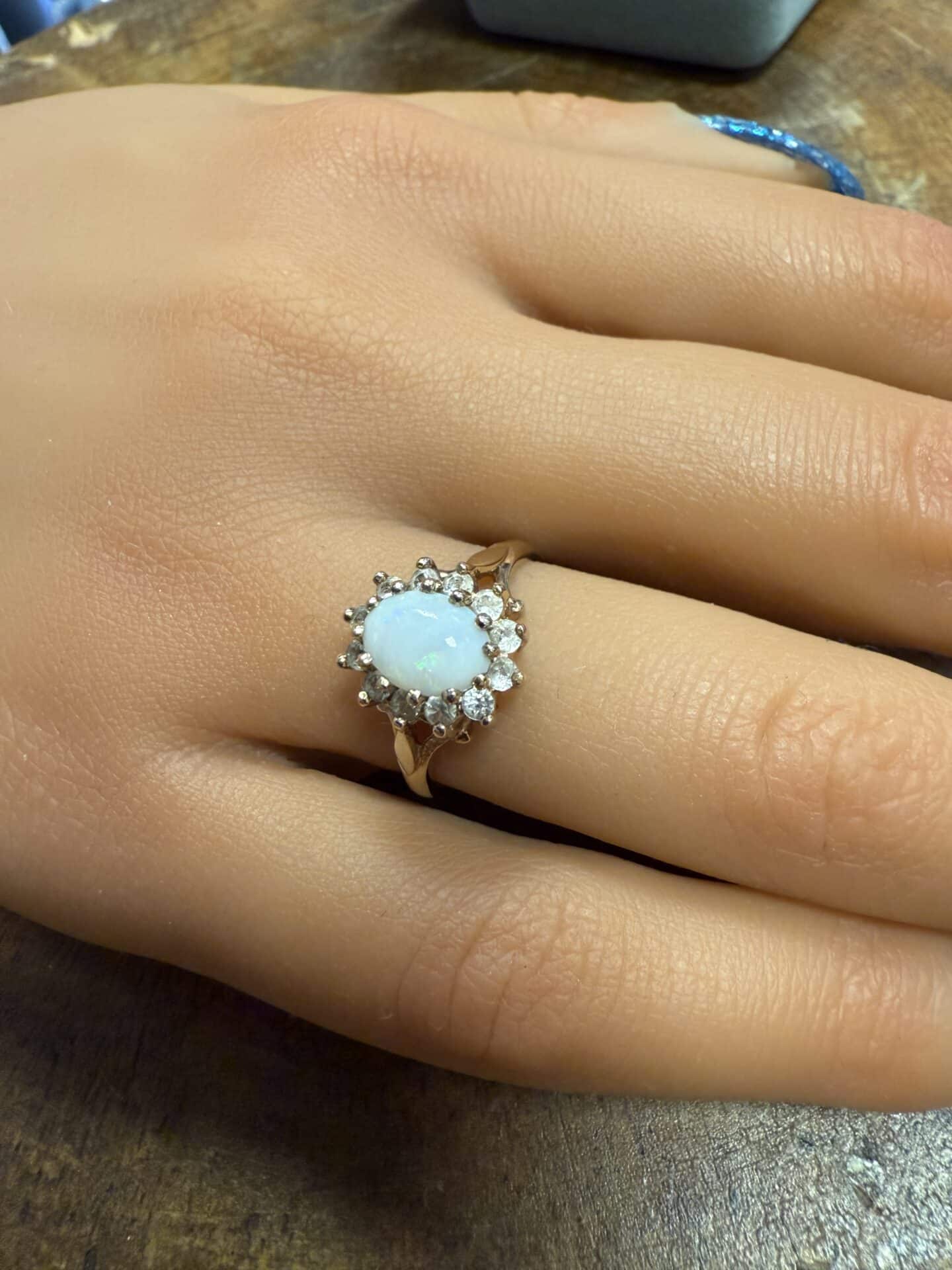 This is a beautiful vibrant opal surrounded with cz sparkling stones for the opal lovers this is a must have full of colour and pizzaz