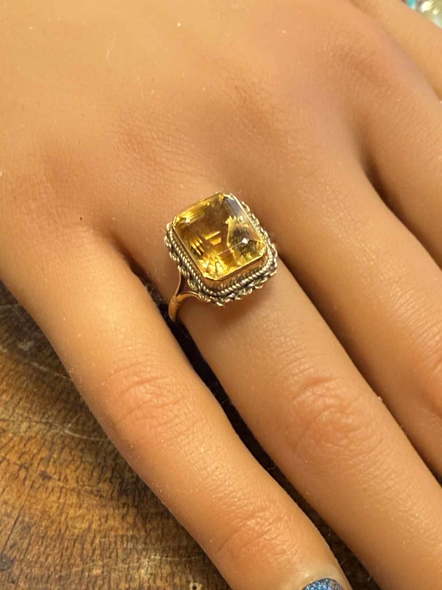 Early 20th century ladies preloved 9ct gold and citrine dress ring in great condition