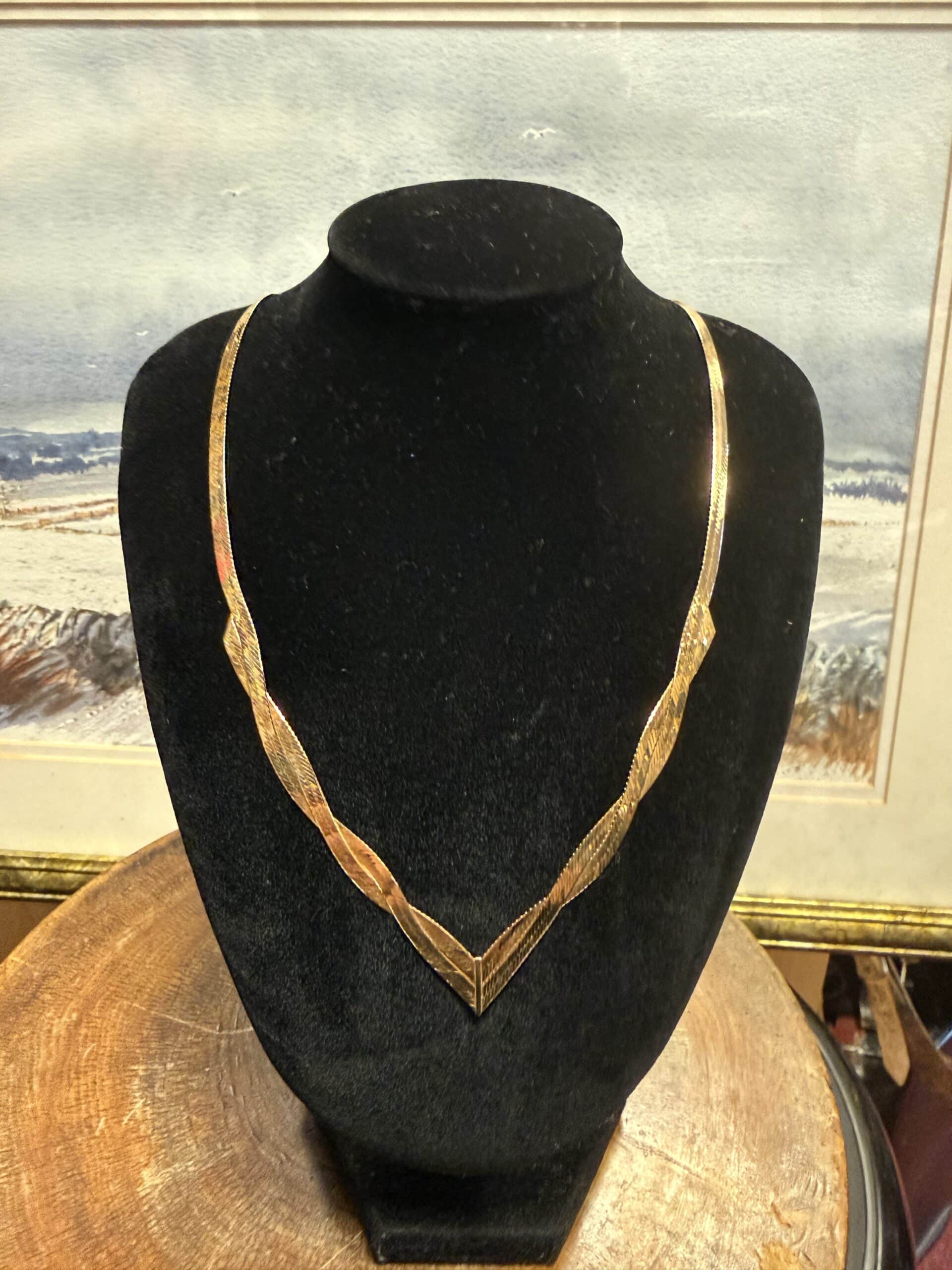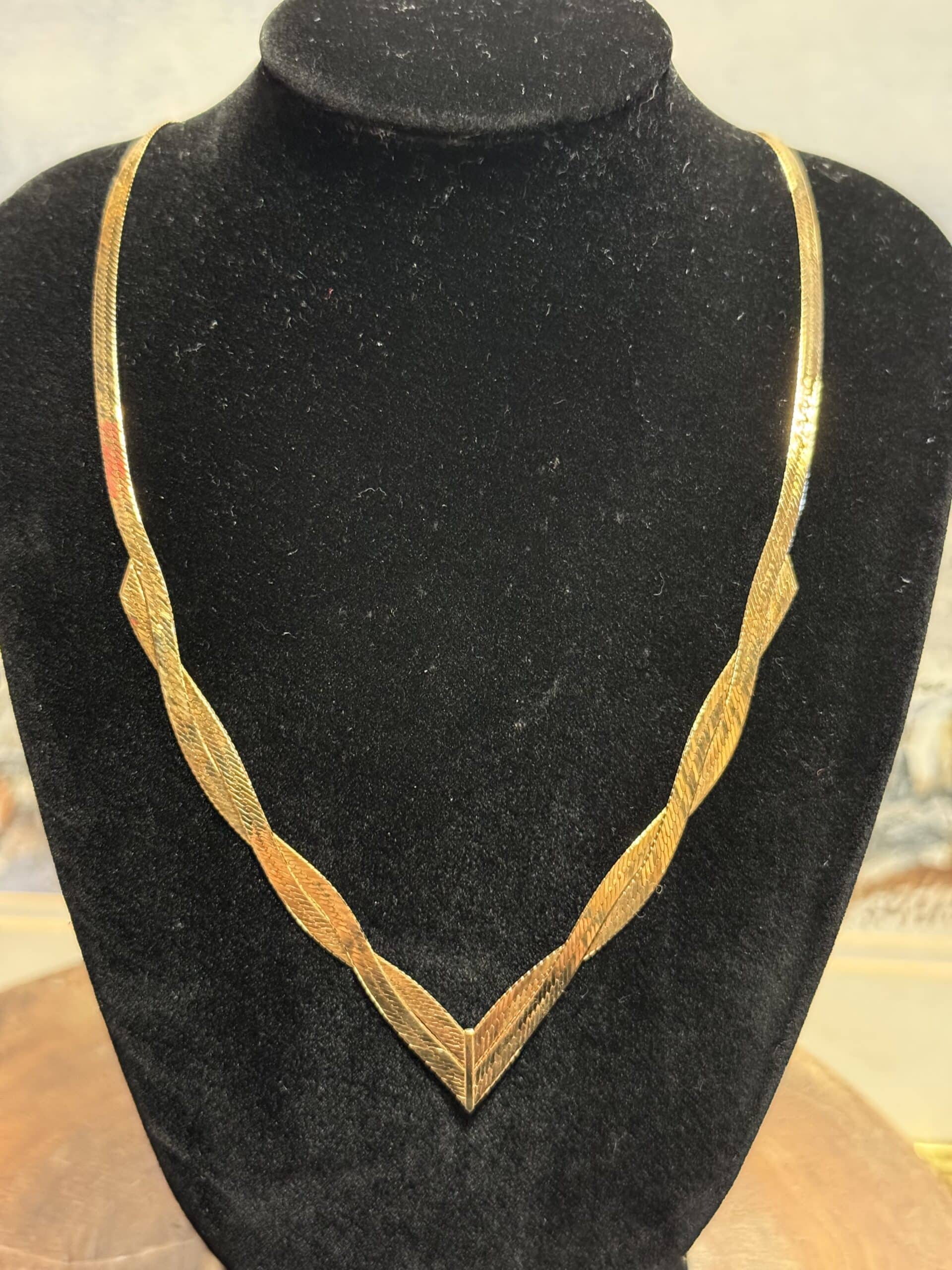 Gorgeous 9ct gold herringbone flat link vintage ladies necklace in excellent preloved condition condition