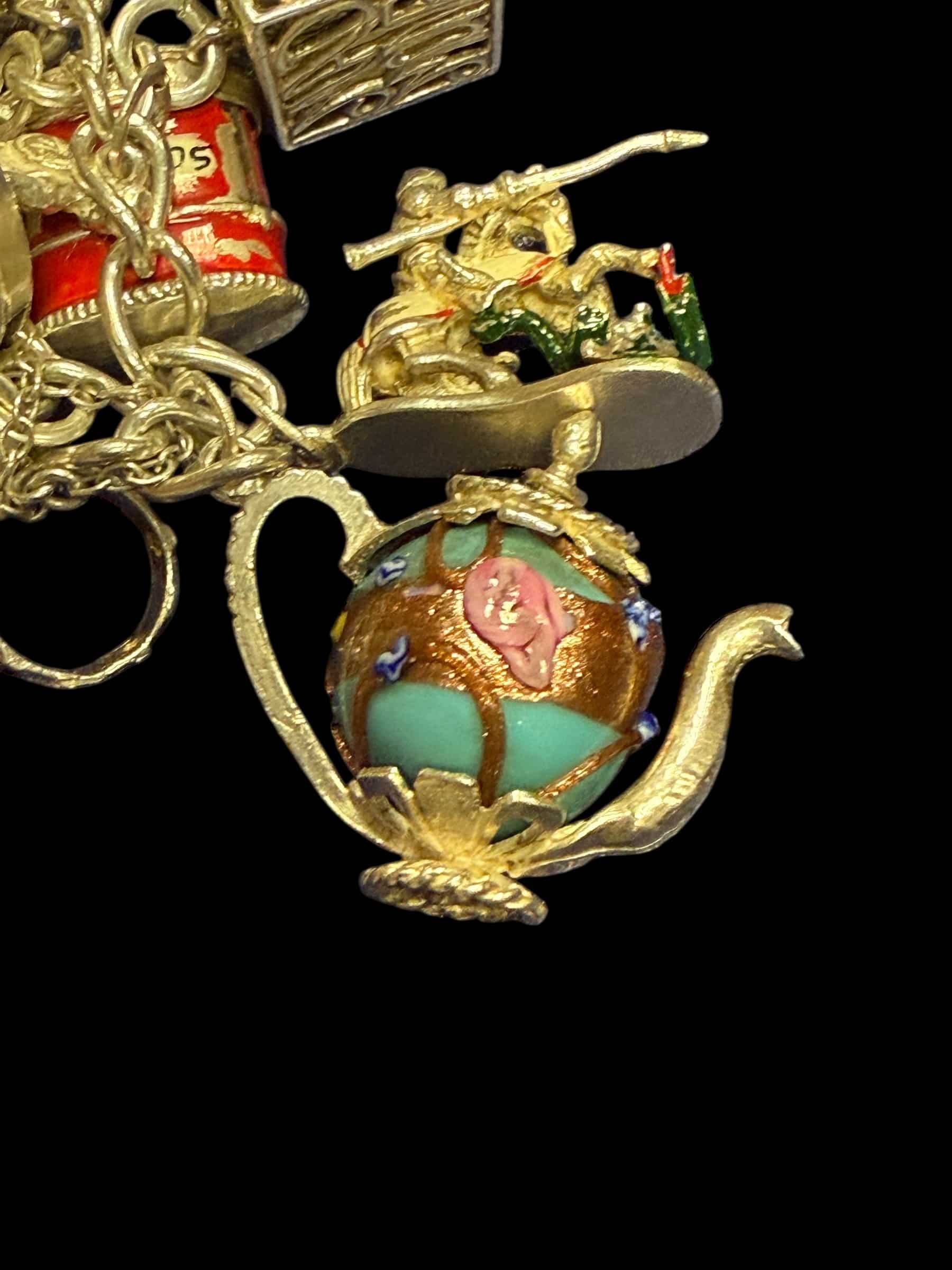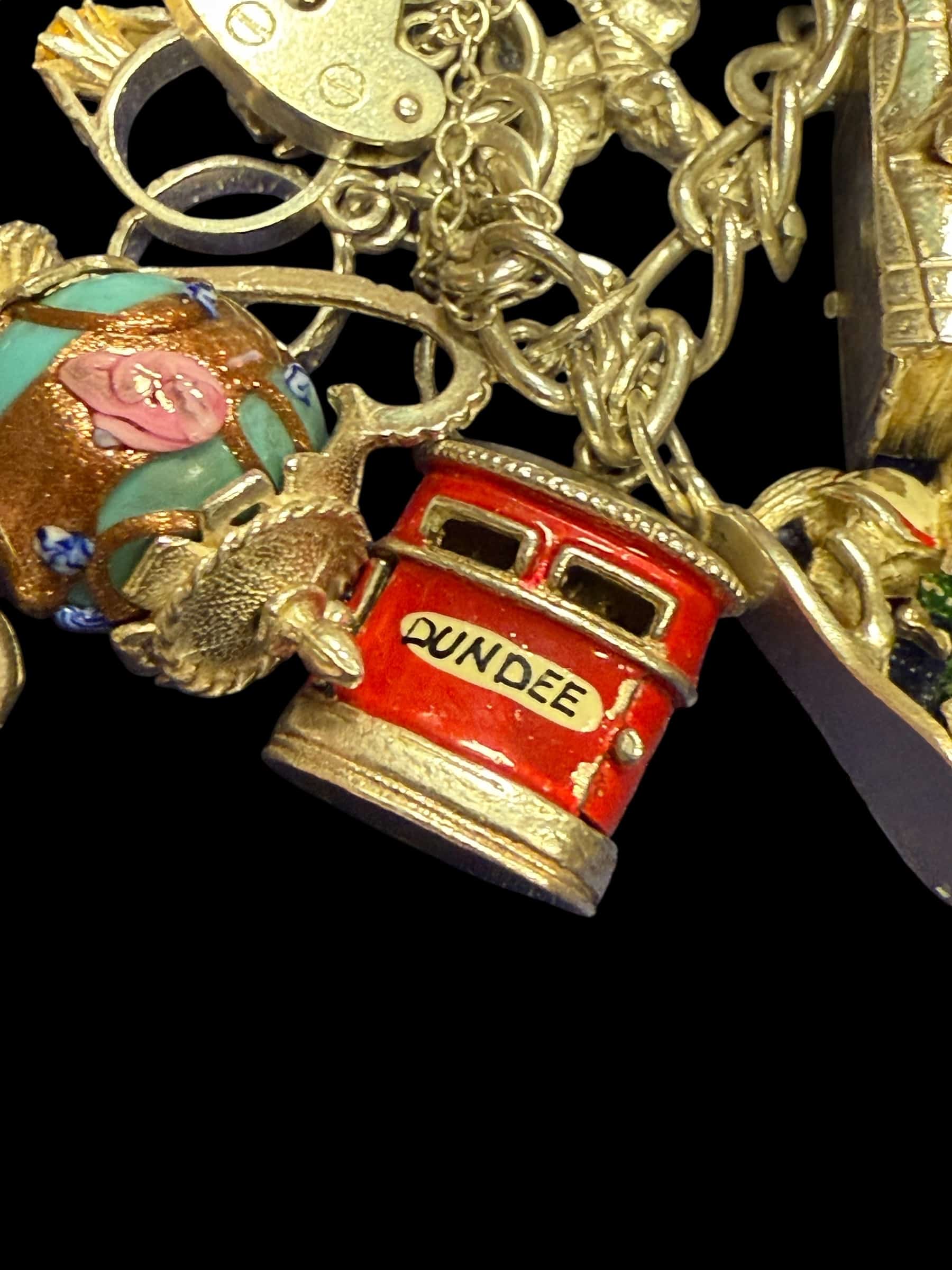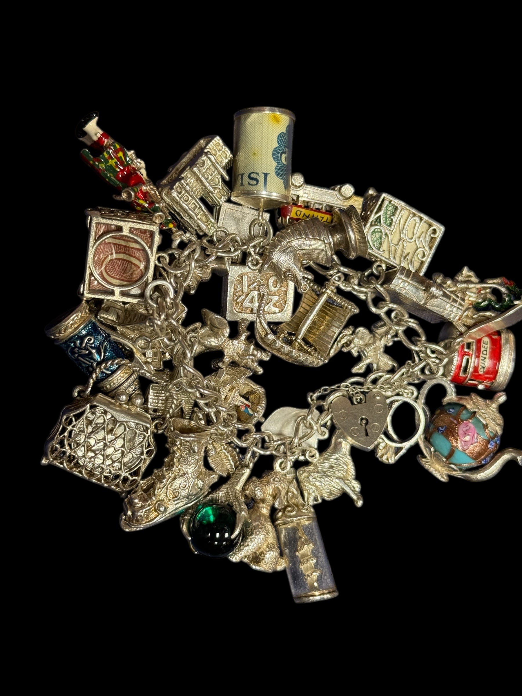 Stunning vintage charm bracelet in excellent condition and fully loaded with 31 unusual charms some that open some enamelled and a very hefty 165g makes this a great wee investment piece