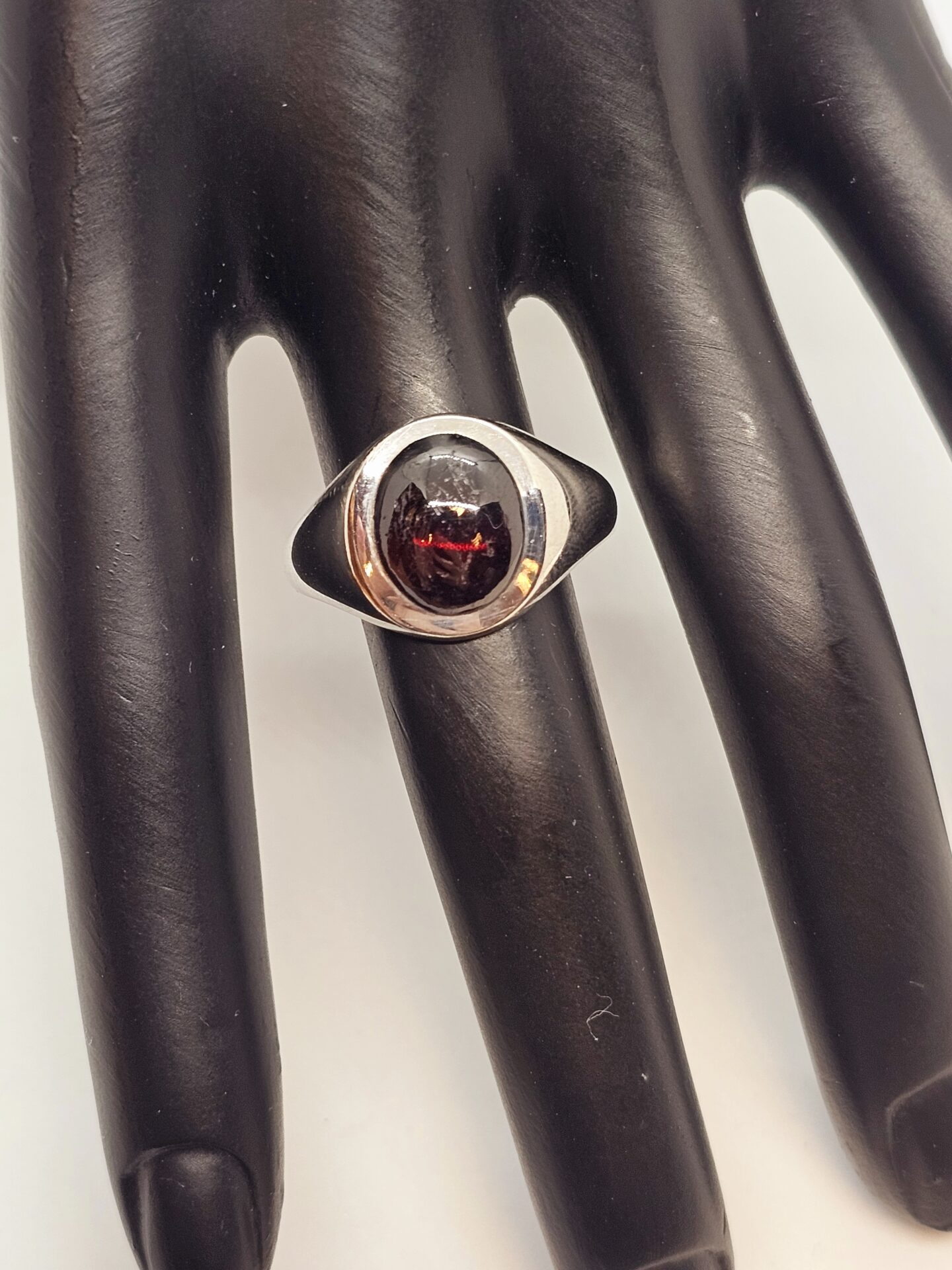 Elegant white gold ring with stunning red stone centerpiece, perfect for timeless style and natural beauty.